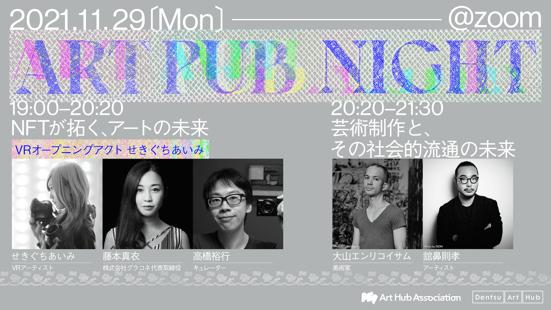 第2回目となるART PUB NIGHTを2021年11月29日に実施。 「NFTが拓く、アートの未来」と「芸術制作と、その社会的流通の未来」というテーマで5人のゲストが登壇した。
