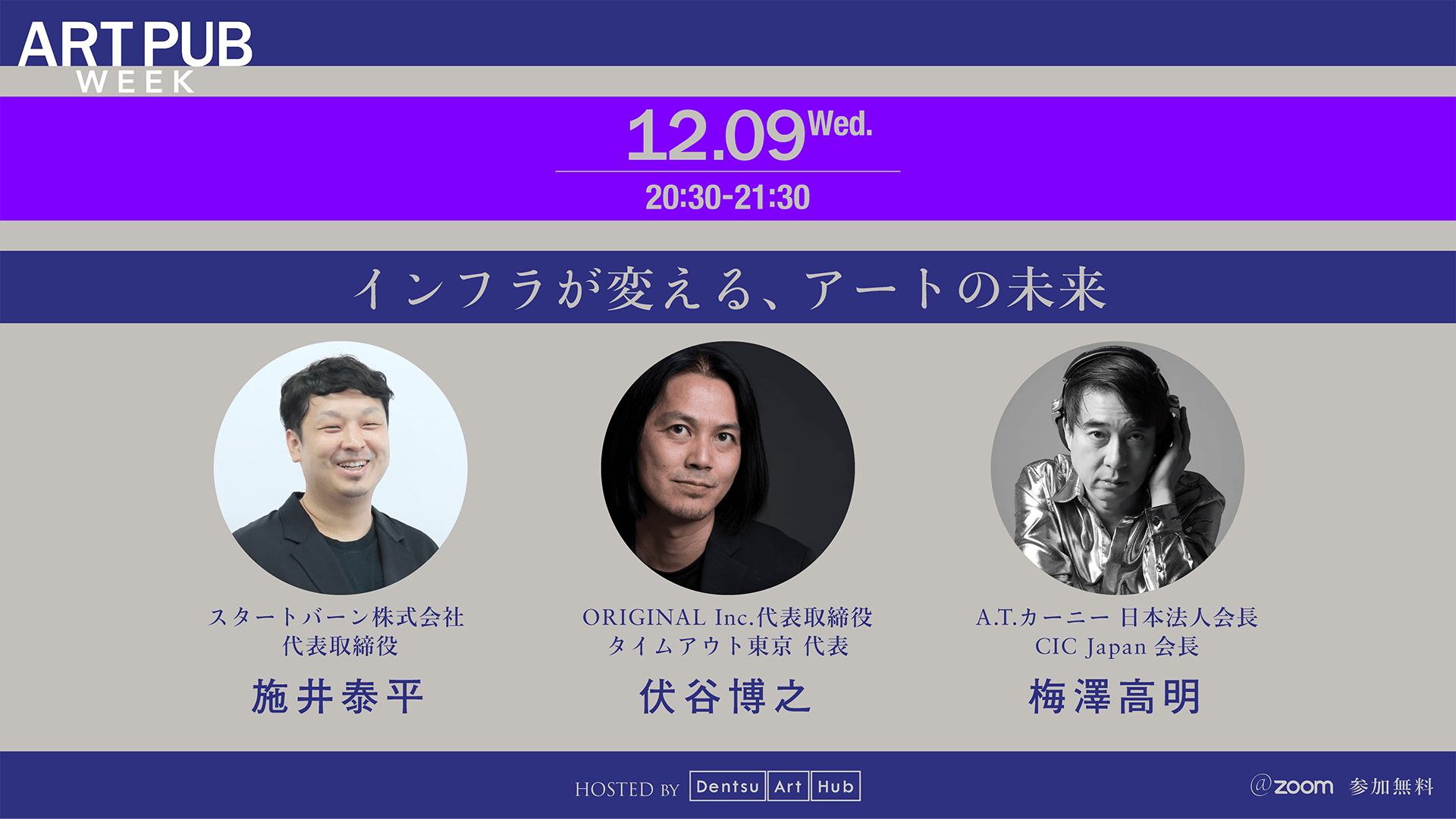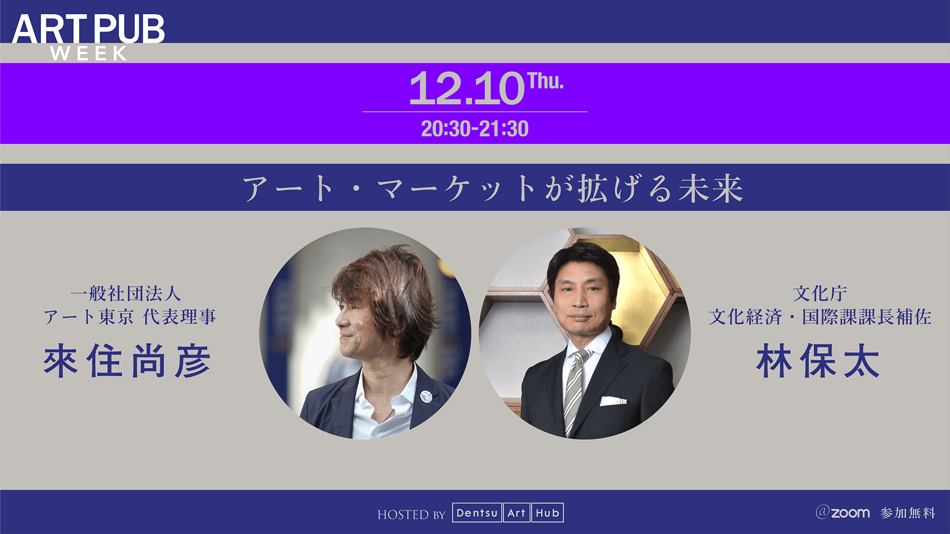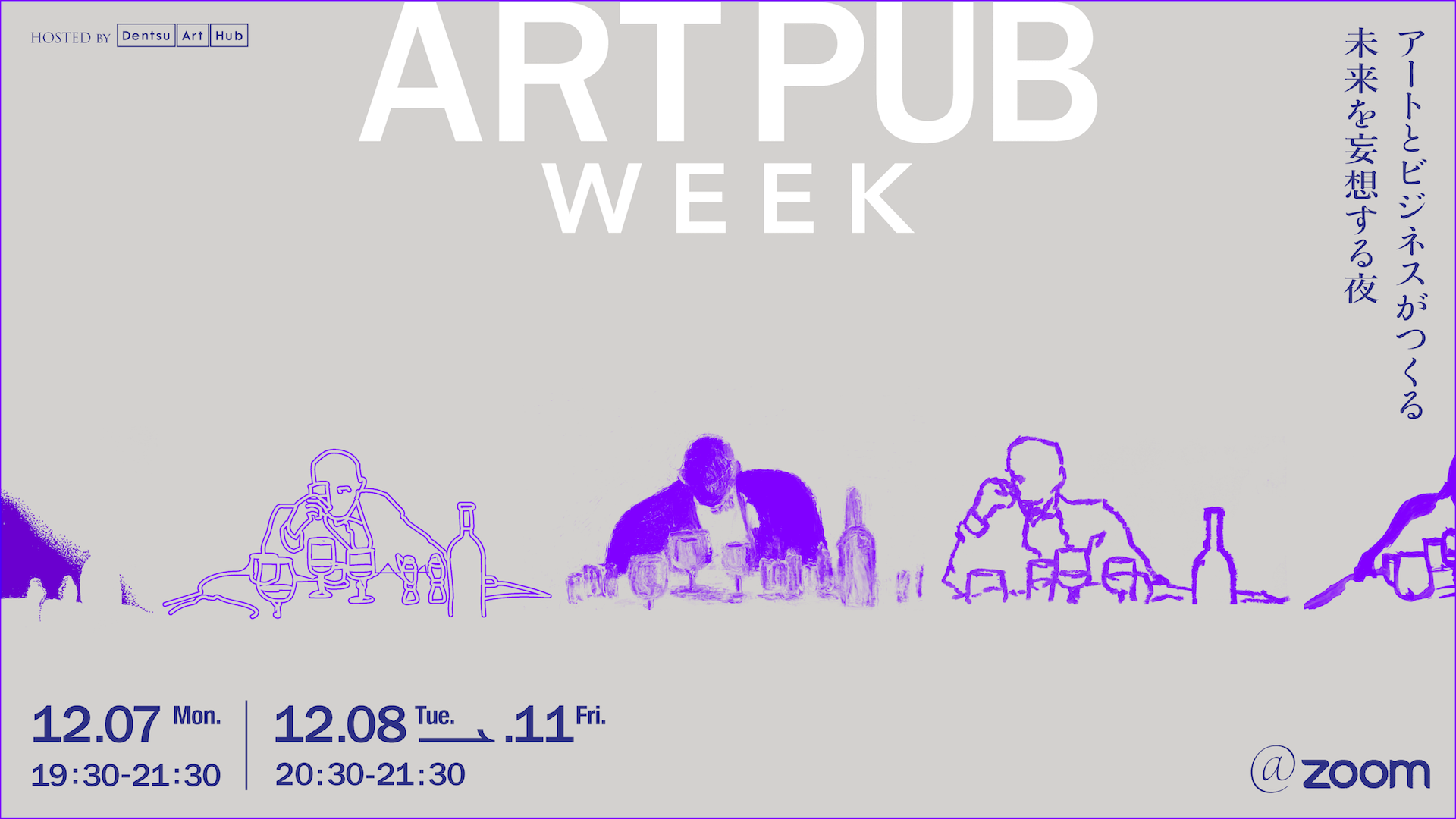 「ART PUB NIGHT / ART PUB WEEK」は、そんなゲストをお呼びしてちょっとゆるめの空気の中でアートとビジネスがつくる未来に向けて妄想を膨らませる、オンライントークイベント。